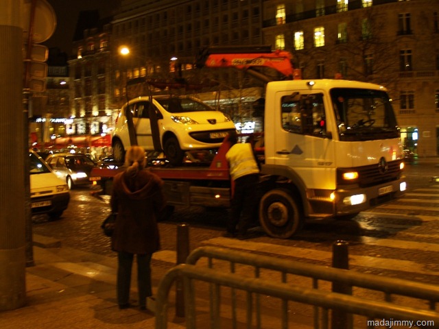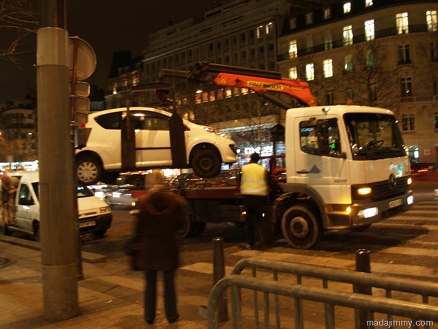 Gambar paling bawah adalah pengangkatan mobil yang melanggar aturan (sepertinya larangan parkir).